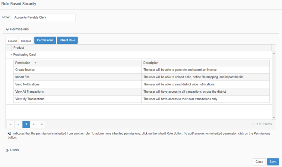 Once the Role(s) and permissions have been created/updated and assigned to the appropriate users, you are ready to start using the new Purchasing Card feature.