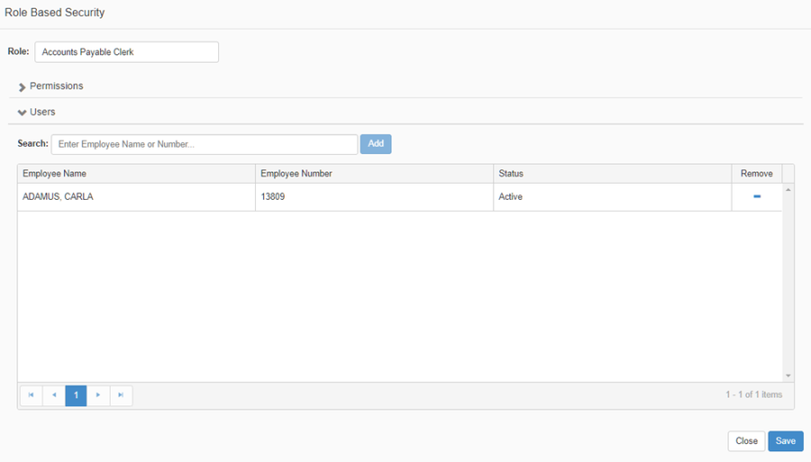 Click Add Role, and a window will popup where you can add the role name (i.e. Accounts Payable Clerk)