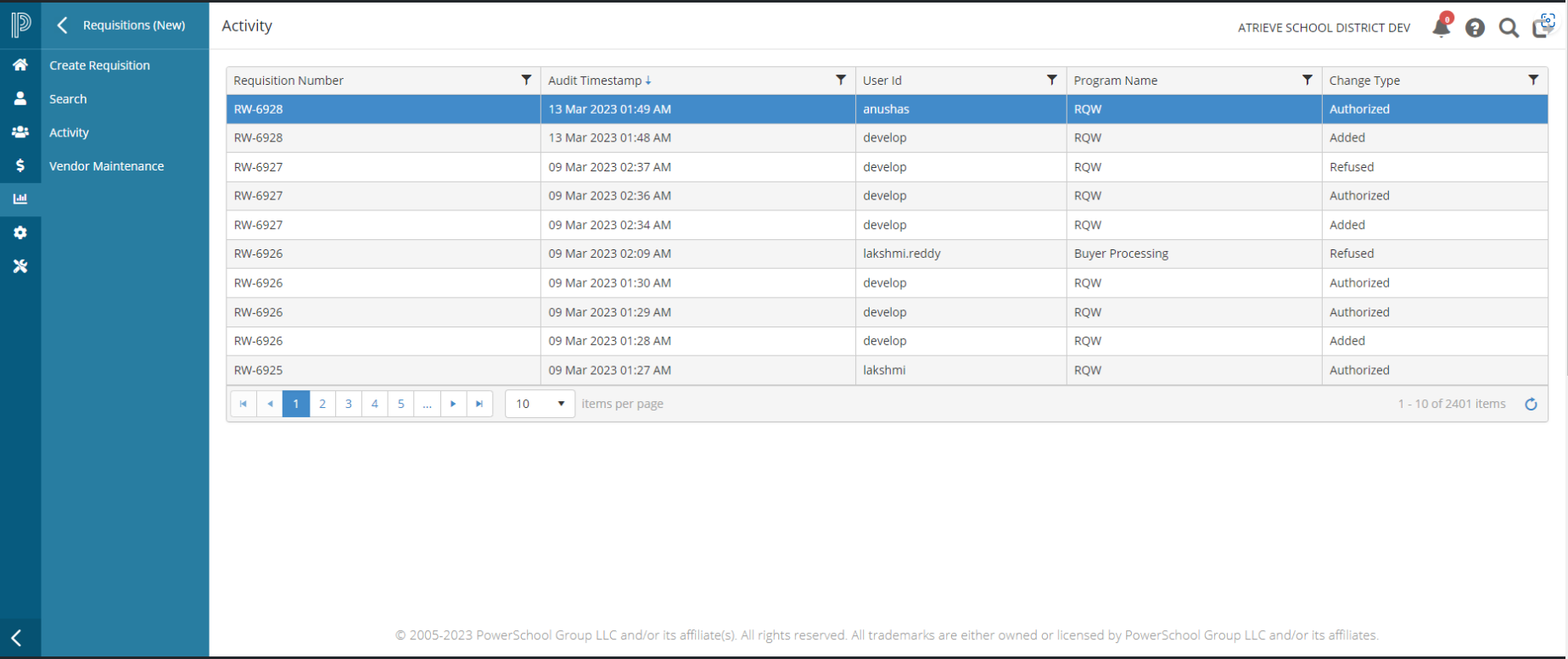 Requisitions - Activity