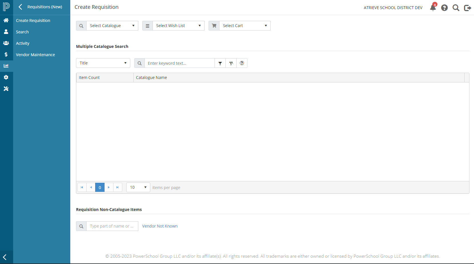 Select a Catalogue from the dropdown list to navigate to the catalogue item list page where you can make selections to add to your Cart or Wish List