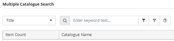 The multiple catalogue search allows for the entering of criteria to find associated items across all catalogues.