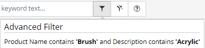 Advanced filter Icon - hovering over the icon will display the current filtering that has been applied if exists, otherwise will say that no filters have been selected.