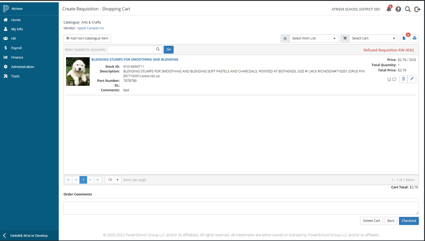 Locate the refused requisition and click on the ‘Refused’ hyperlink in the status column and the shopping cart page will open.