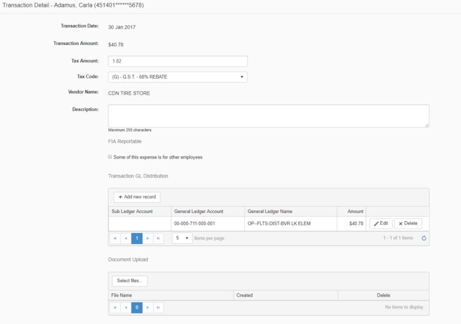 Documents (i.e. a receipt, or approval letter) may be uploaded, on either the Summary page or the Detail page. Refer to the Document Upload section below in this document for more details.
