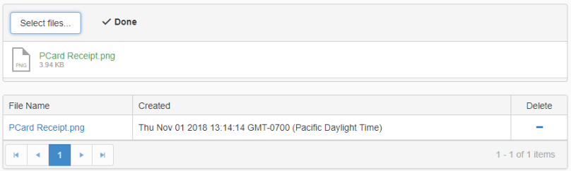 To attach one or more receipts or other document to a purchasing card transaction, click the Select Files button.