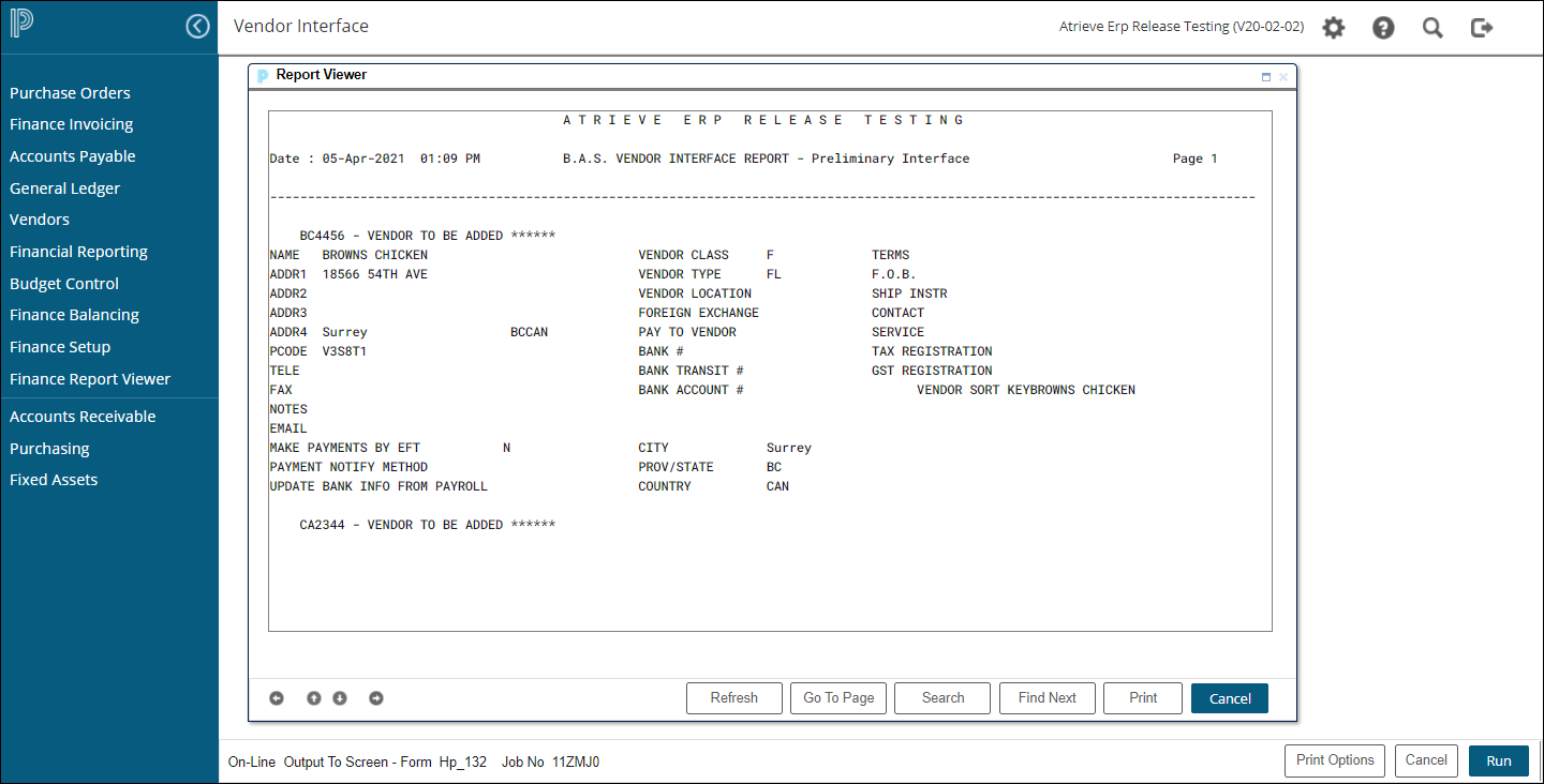 Go to: Finance Balancing > Interface > Vendor Interface.