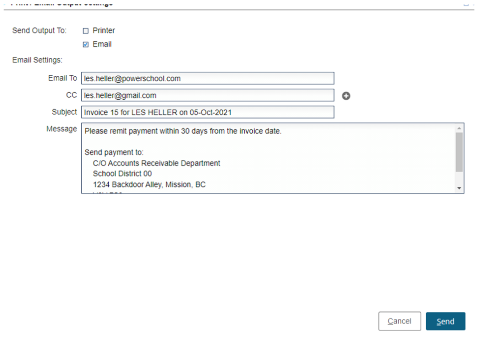 The Email output option if Receivables Invoice Emailing is not enabled in Global Email Profile will be disabled.