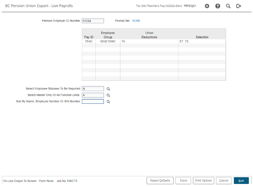 Payroll > Pension > BC Pension Reporting > BC Pension Union Export