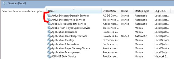 5. Start->Run msc, Restart Active Directory Domain Services and Active Directory Web Services: