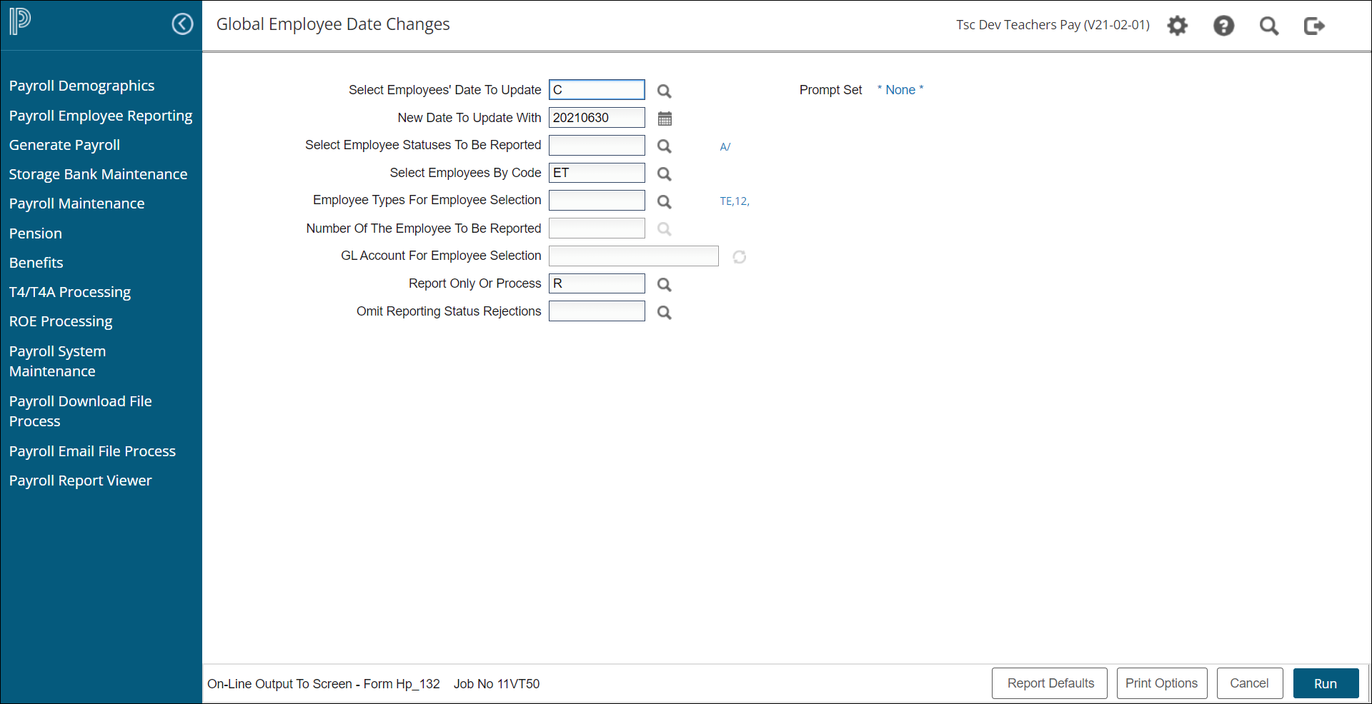 Payroll Global Employee Date Changes